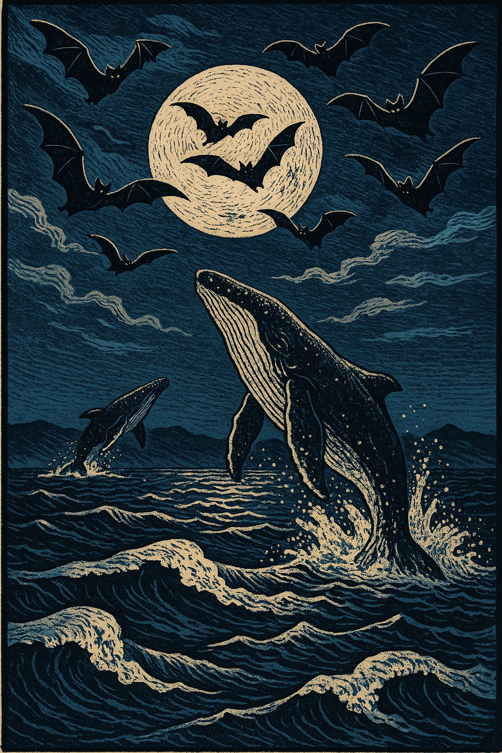 Whales sing the most complex songs on Earth. Though their language remains a mystery, we now know their calls travel across oceans, weaving stories that connect pods over vast distances. Scuba divers in Hawaii hear their haunting melodies, each one unique. Humans, too, fill the world with music—countless songs, instruments giving voice to the emotions locked in our hearts. To sing or play is to shape time and space itself, an act of cosmic navigation rifting off the big bang.