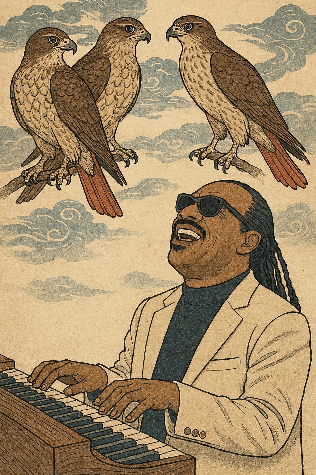Hawks and eagles see with unmatched clarity, spotting prey from dizzying heights before diving with precision. Now, humans peer down from satellites, mapping jungles and dirt roads from space. Our vision stretches from the cosmic to the microscopic—yet even in darkness, leopards outshine us. Still, lack of sight never stopped Stevie Wonder.
