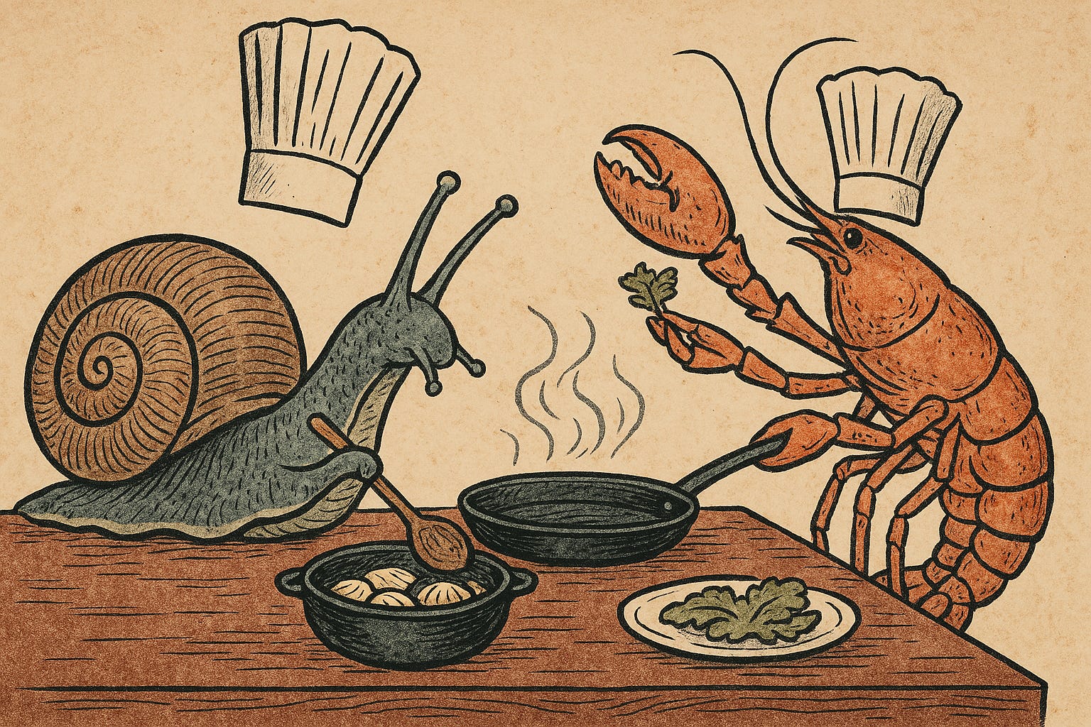 Unlike other creatures, we aren’t bound by what’s given—we cultivate crops, craft cuisines, and terraform landscapes to suit our hunger. Or maybe snails and lobsters are just not as picky. Still, our menus span every language, every culture—an insatiable appetite for connection.